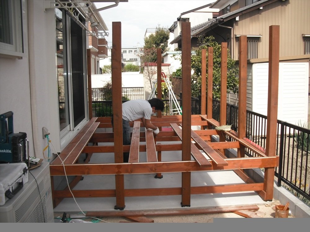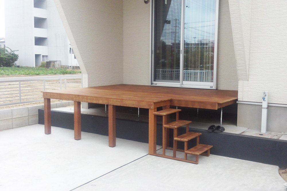 ウッドデッキ:キッチン横のオープンテラス/K様邸